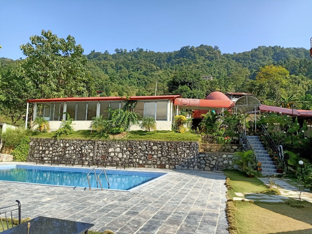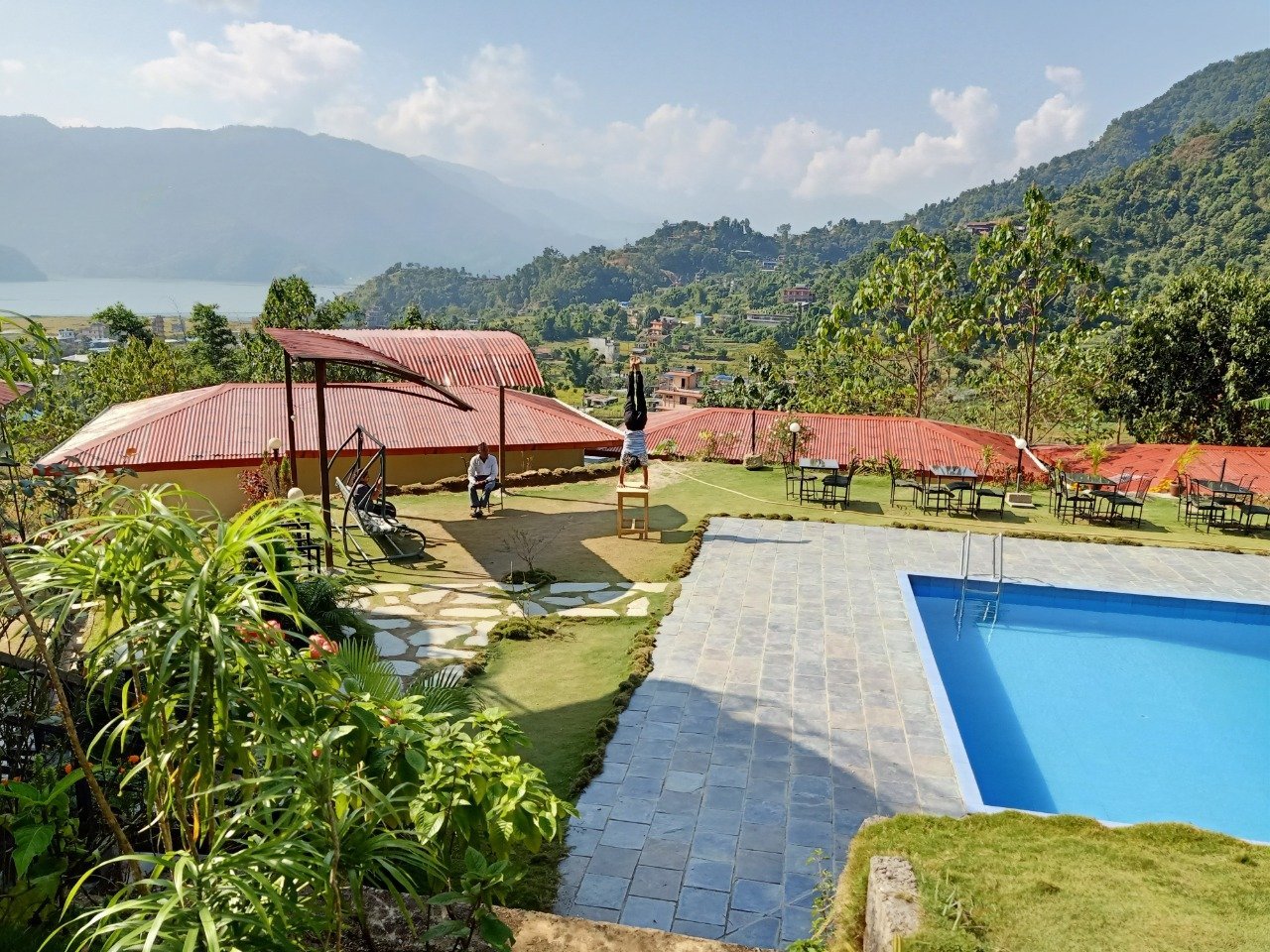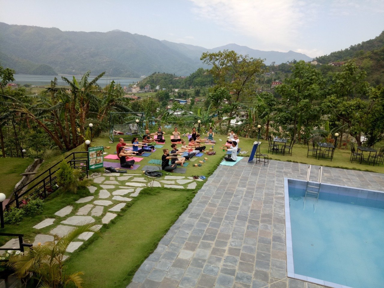 Pokhara Yoga School And Retreat Center offer endless breath-taking views of the Himalayan Mountains, the Valley, and Fewa Lake. With its amazing position set on a hilltop, away from the bustling streets, a stunning swimming pool and beautiful gardens. Here, you will experience authentic Nepalese culture blended with modern amenities such as spring water swimming-pool.